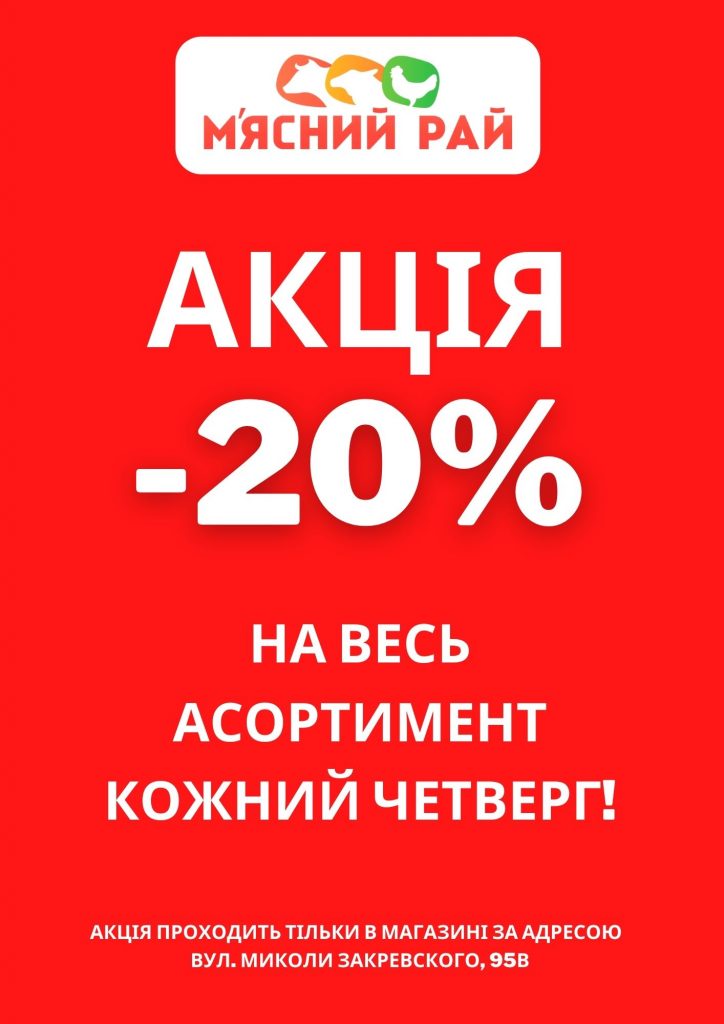 Акція – 20% Щочетверга! Тільки в магазині по вул. Закревського 95В